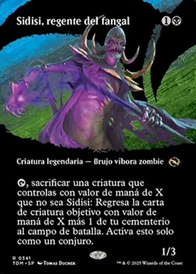 | Rules | , Sacrifice a creature you control with mana value X other than Sidisi: Return target creature card with mana value X plus 1 from your graveyard to the battlefield. Activate only as a sorcery. |