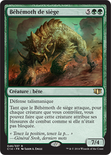 | Rules | Hexproof As long as Siege Behemoth is attacking, for each creature you control, you may have that creature assign its combat damage as though it weren't blocked. |