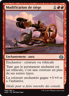 | Rules | Enchant creature or Vehicle As long as enchanted permanent is a Vehicle, it's a creature in addition to its other types. Enchanted creature gets +3/+0 and has first strike. |