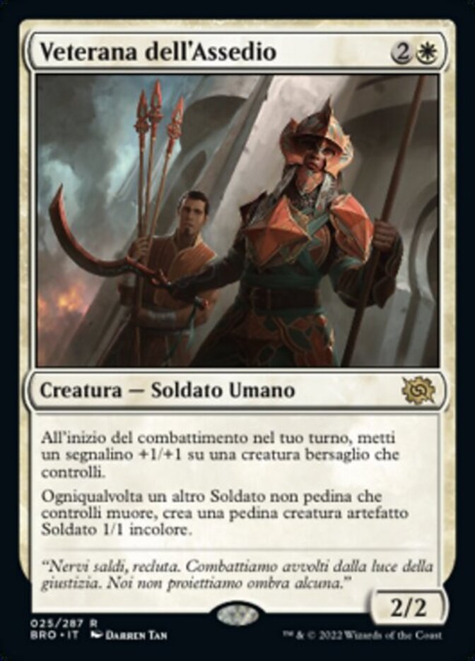 | Rules | At the beginning of combat on your turn, put a +1/+1 counter on target creature you control. Whenever another nontoken Soldier you control dies, create a 1/1 colorless Soldier artifact creature token. |
