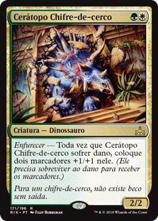| Rules | Enrage — Whenever Siegehorn Ceratops is dealt damage, put two +1/+1 counters on it. (It must survive the damage to get the counters.) |