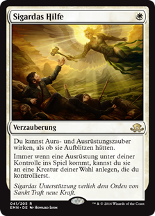 | Rules | You may cast Aura and Equipment spells as though they had flash. Whenever an Equipment enters the battlefield under your control, you may attach it to target creature you control. |