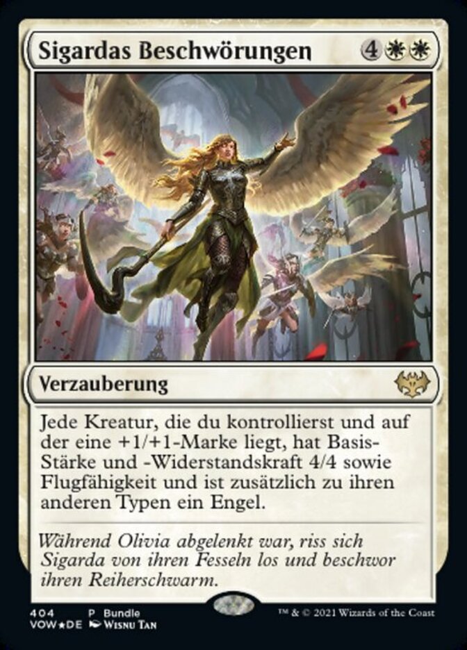 | Flavor | With Olivia distracted, Sigarda tore free from her bindings and summoned her Host of Herons. |