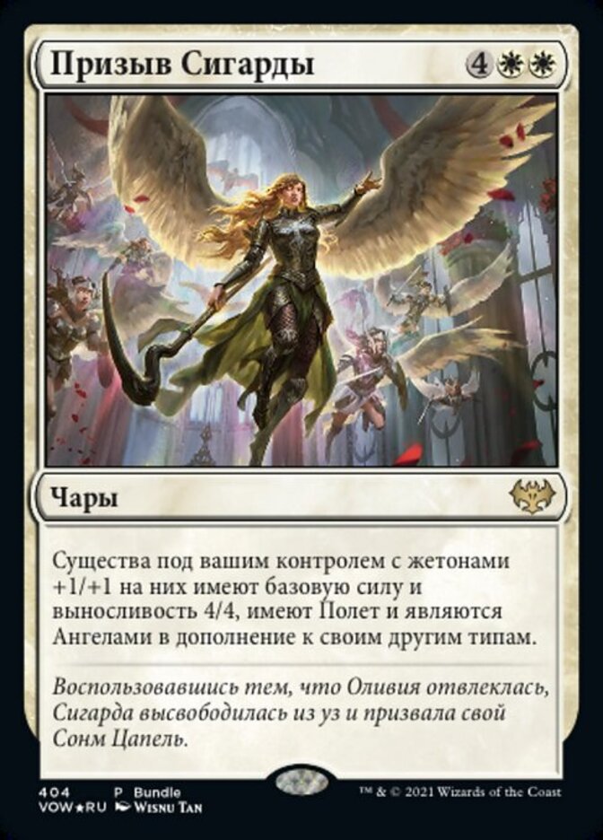 | Flavor | With Olivia distracted, Sigarda tore free from her bindings and summoned her Host of Herons. |