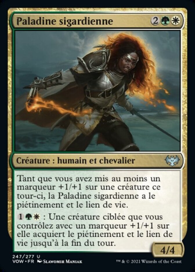 | Rules | As long as you've put one or more +1/+1 counters on a creature this turn, Sigardian Paladin has trample and lifelink. : Target creature you control with a +1/+1 counter on it gains trample and lifelink until end of turn. |