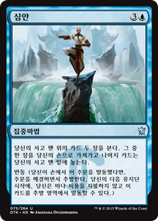 | Rules | Look at the top two cards of your library. Put one of them into your hand and the other on the bottom of your library. Rebound (If you cast this spell from your hand, exile it as it resolves. At the beginning of your next upkeep, you may cast this card from exile without paying its mana cost.) |