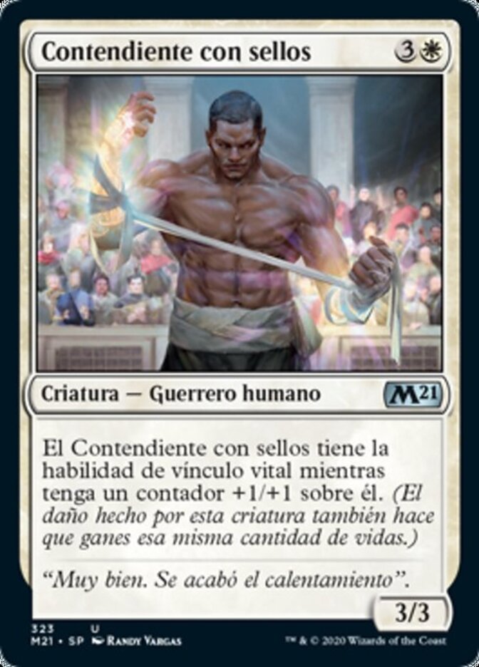 | Rules | Sigiled Contender has lifelink as long as it has a +1/+1 counter on it. (Damage dealt by this creature also causes you to gain that much life.) |