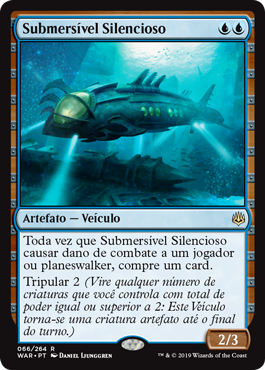 | Rules | Whenever Silent Submersible deals combat damage to a player or planeswalker, draw a card. Crew 2 (Tap any number of creatures you control with total power 2 or more: This Vehicle becomes an artifact creature until end of turn.) |