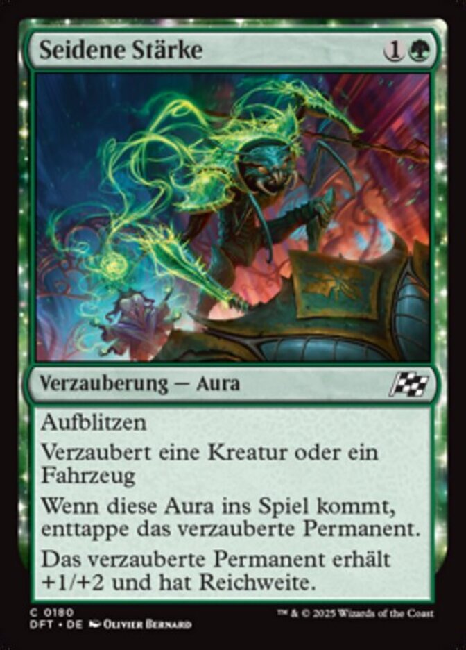 | Rules | Flash Enchant creature or Vehicle When this Aura enters, untap enchanted permanent. Enchanted permanent gets +1/+2 and has reach. |