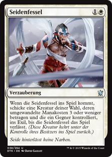 | Rules | When Silkwrap enters the battlefield, exile target creature with mana value 3 or less an opponent controls until Silkwrap leaves the battlefield. (That creature returns under its owner's control.) |