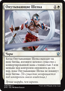 | Rules | When Silkwrap enters the battlefield, exile target creature with mana value 3 or less an opponent controls until Silkwrap leaves the battlefield. (That creature returns under its owner's control.) |