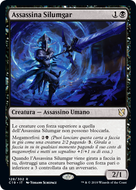 | Rules | Creatures with power greater than Silumgar Assassin's power can't block it. Megamorph (You may cast this card face down as a 2/2 creature for . Turn it face up any time for its megamorph cost and put a +1/+1 counter on it.) When Silumgar Assassin is turned face up, destroy target creature with power 3 or less an opponent controls. |