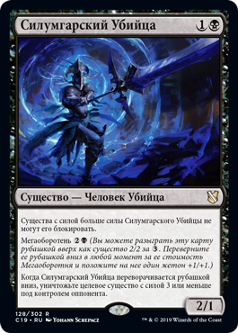| Rules | Creatures with power greater than Silumgar Assassin's power can't block it. Megamorph (You may cast this card face down as a 2/2 creature for . Turn it face up any time for its megamorph cost and put a +1/+1 counter on it.) When Silumgar Assassin is turned face up, destroy target creature with power 3 or less an opponent controls. |