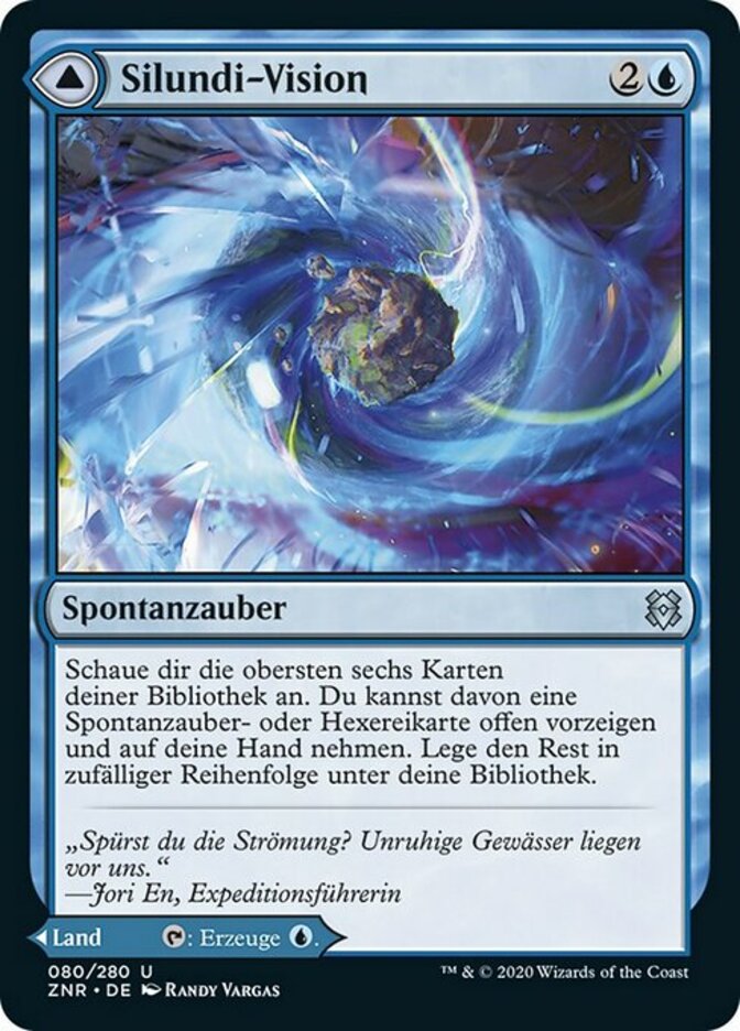 | Rules | Look at the top six cards of your library. You may reveal an instant or sorcery card from among them and put it into your hand. Put the rest on the bottom of your library in a random order. // Silundi Isle enters the battlefield tapped. : Add . |