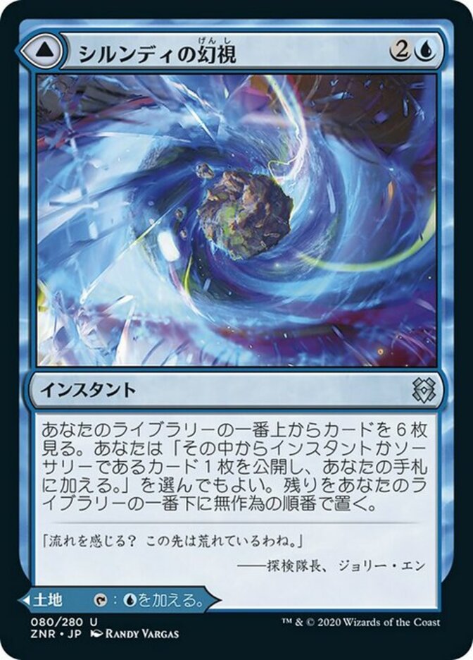 | Rules | Look at the top six cards of your library. You may reveal an instant or sorcery card from among them and put it into your hand. Put the rest on the bottom of your library in a random order. // Silundi Isle enters the battlefield tapped. : Add . |