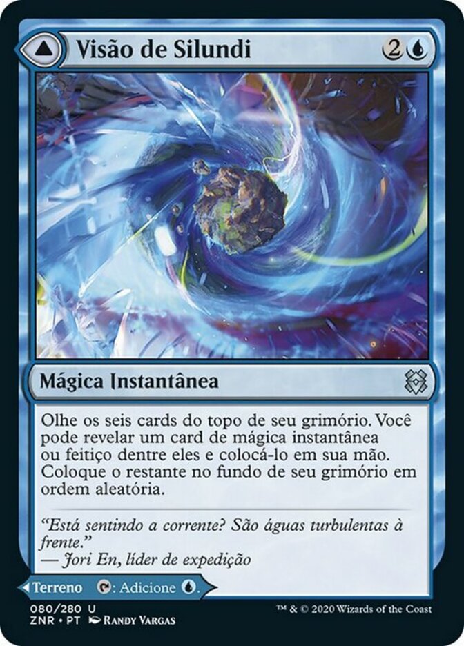 | Rules | Look at the top six cards of your library. You may reveal an instant or sorcery card from among them and put it into your hand. Put the rest on the bottom of your library in a random order. // Silundi Isle enters the battlefield tapped. : Add . |