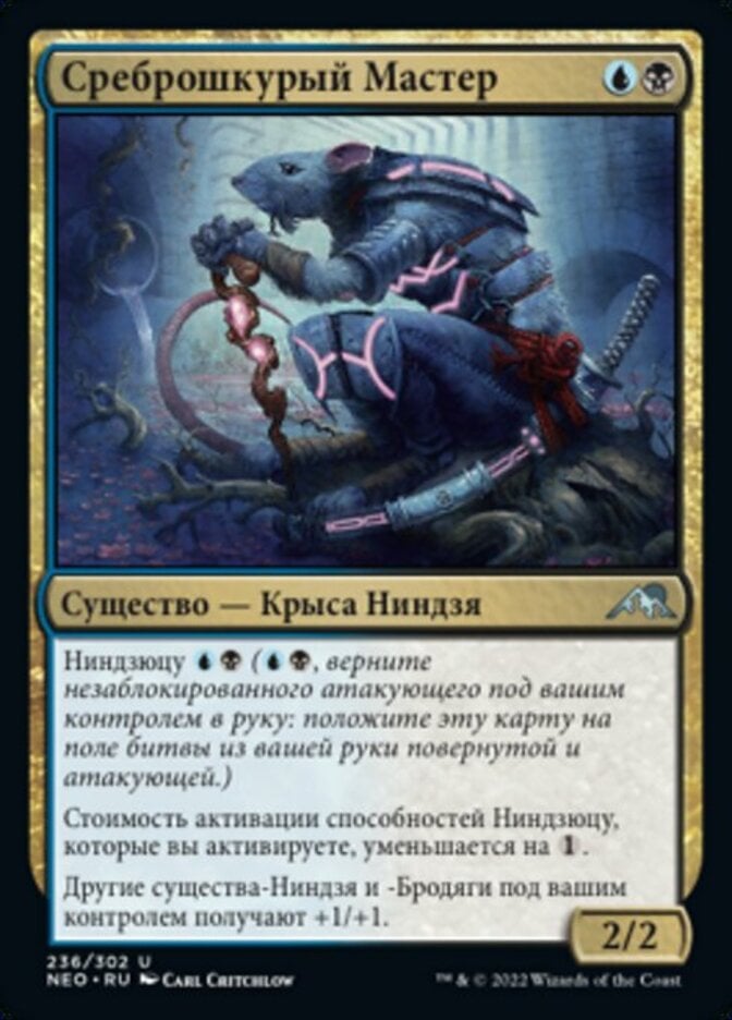 | Rules | Ninjutsu (, Return an unblocked attacker you control to hand: Put this card onto the battlefield from your hand tapped and attacking.) Ninjutsu abilities you activate cost less to activate. Other Ninja and Rogue creatures you control get +1/+1. |