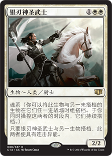 | Rules | Soulbond (You may pair this creature with another unpaired creature when either enters the battlefield. They remain paired for as long as you control both of them.) As long as Silverblade Paladin is paired with another creature, both creatures have double strike. |