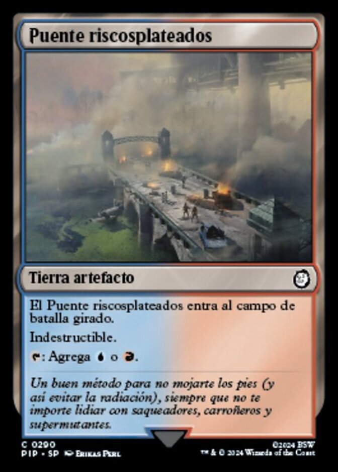 | Rules | Silverbluff Bridge enters the battlefield tapped. Indestructible : Add or . |