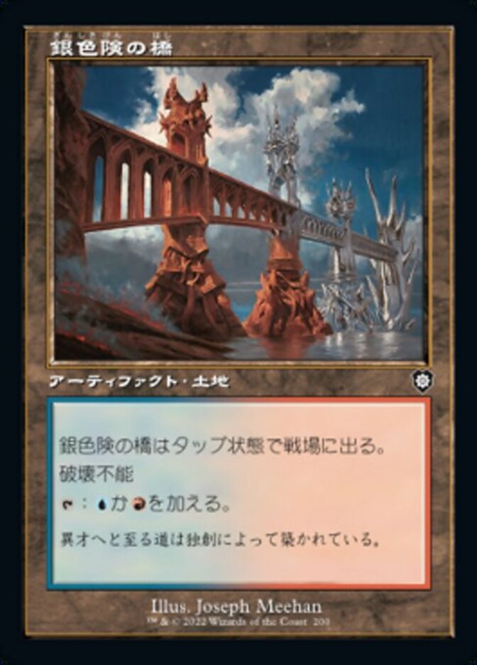 | Rules | Silverbluff Bridge enters the battlefield tapped. Indestructible : Add or . |