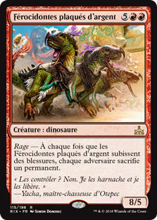 | Rules | Enrage — Whenever Silverclad Ferocidons is dealt damage, each opponent sacrifices a permanent. |