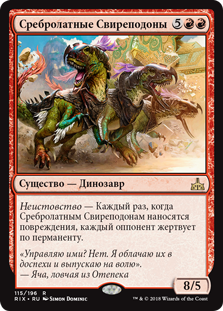 | Rules | Enrage — Whenever Silverclad Ferocidons is dealt damage, each opponent sacrifices a permanent. |