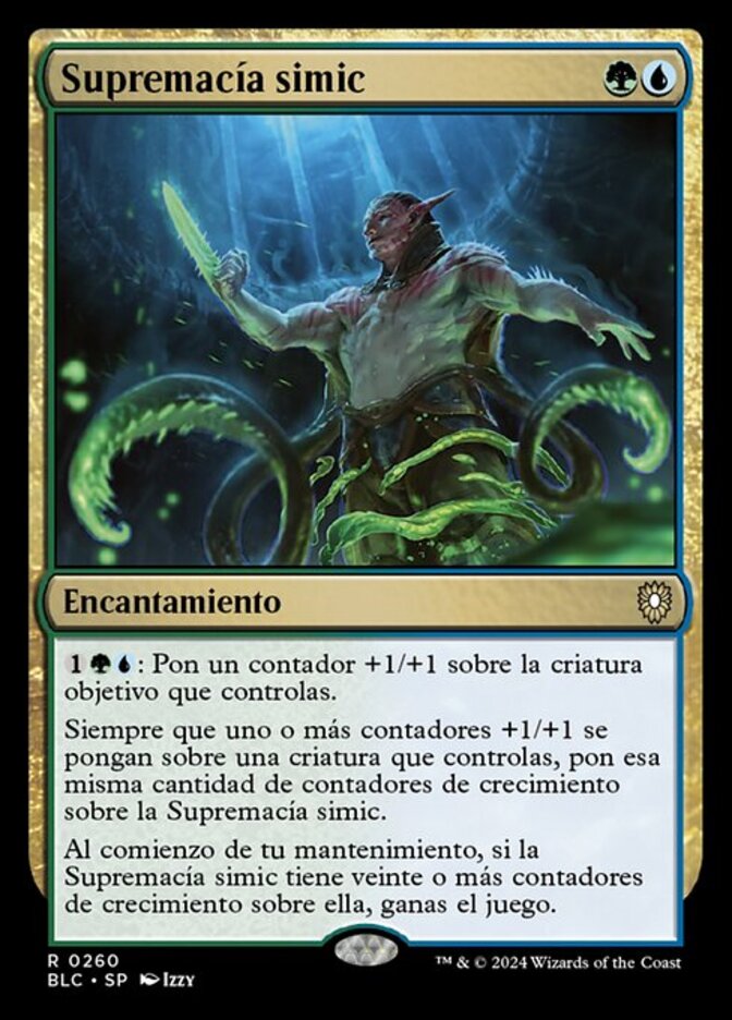 | Rules | : Put a +1/+1 counter on target creature you control. Whenever one or more +1/+1 counters are put on a creature you control, put that many growth counters on Simic Ascendancy. At the beginning of your upkeep, if Simic Ascendancy has twenty or more growth counters on it, you win the game. |