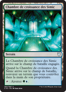 | Rules | Simic Growth Chamber enters the battlefield tapped. When Simic Growth Chamber enters the battlefield, return a land you control to its owner's hand. : Add . |