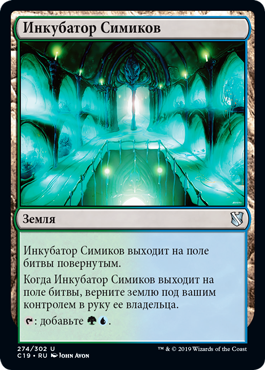 | Rules | Simic Growth Chamber enters the battlefield tapped. When Simic Growth Chamber enters the battlefield, return a land you control to its owner's hand. : Add . |