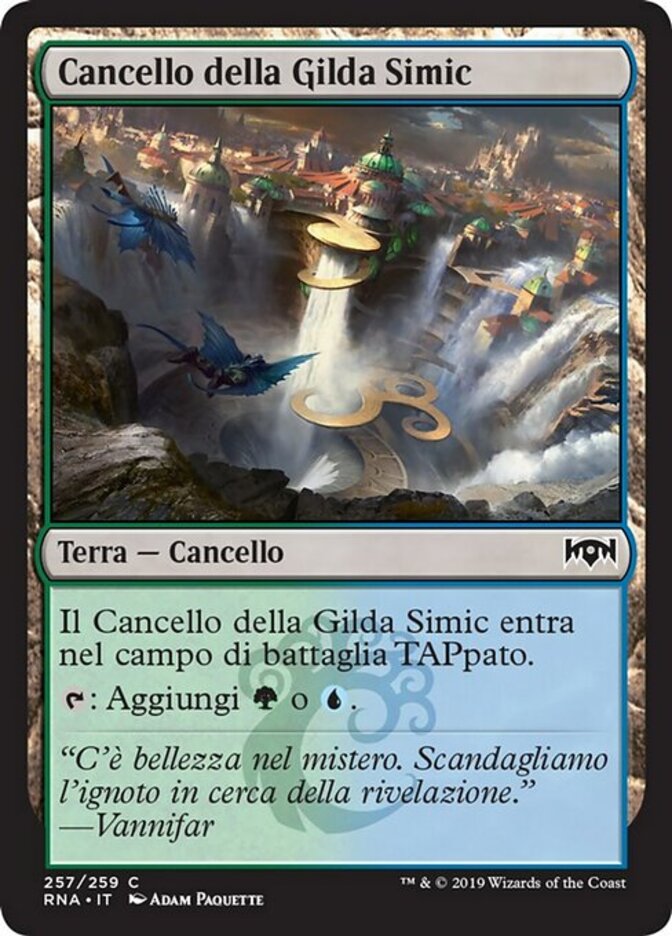 | Rules | Simic Guildgate enters the battlefield tapped. : Add or . |