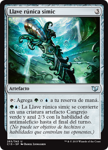 | Rules | : Add or . : Simic Keyrune becomes a 2/3 green and blue Crab artifact creature with hexproof until end of turn. (It can't be the target of spells or abilities your opponents control.) |