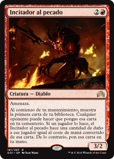 | Rules | Menace At the beginning of your upkeep, reveal the top card of your library. Any opponent may have you put that card into your graveyard. If a player does, Sin Prodder deals damage to that player equal to that card's mana value. Otherwise, put that card into your hand. |