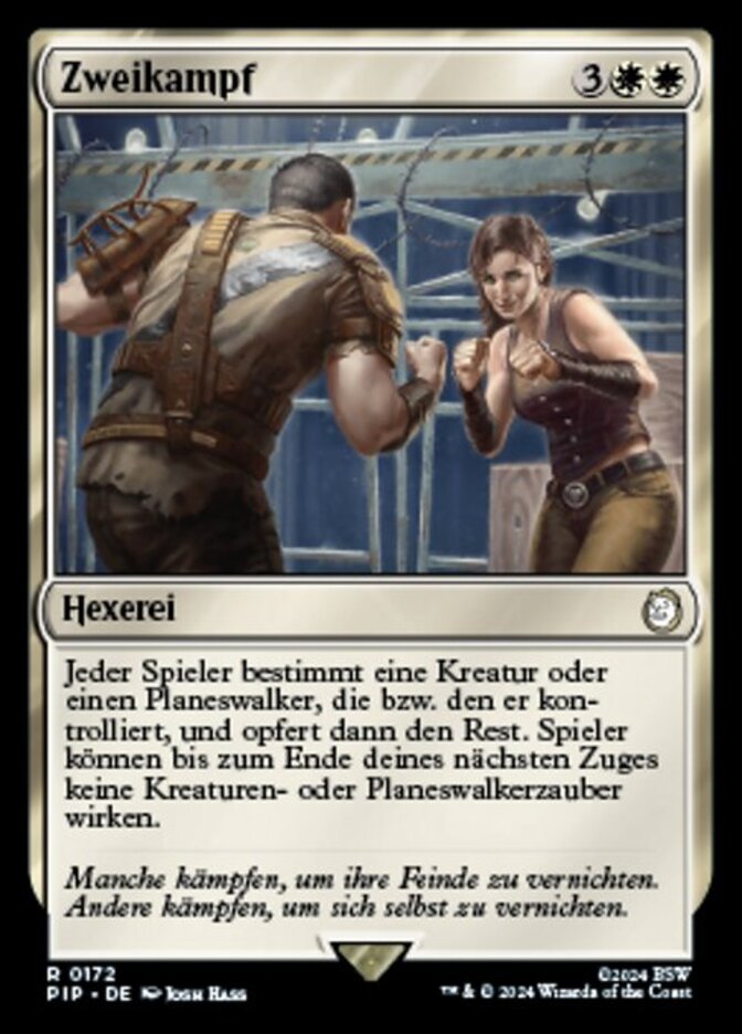 | Rules | Each player chooses a creature or planeswalker they control, then sacrifices the rest. Players can't cast creature or planeswalker spells until the end of your next turn. |