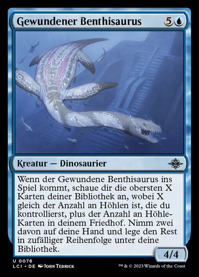 | Rules | When Sinuous Benthisaur enters the battlefield, look at the top X cards of your library, where X is the number of Caves you control plus the number of Cave cards in your graveyard. Put two of those cards into your hand and the rest on the bottom of your library in a random order. |