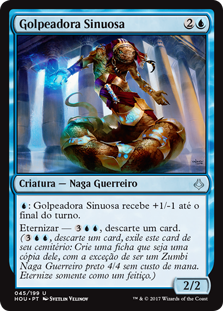 | Rules | : Sinuous Striker gets +1/-1 until end of turn. Eternalize—, Discard a card. (, Discard a card, Exile this card from your graveyard: Create a token that's a copy of it, except it's a 4/4 black Zombie Naga Warrior with no mana cost. Eternalize only as a sorcery.) |