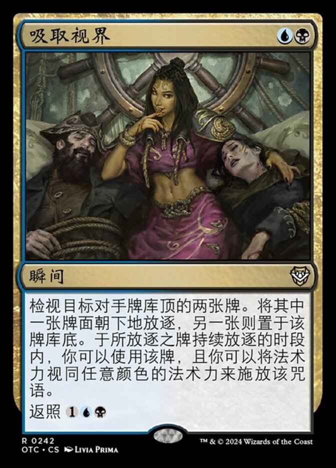 | Rules | Look at the top two cards of target opponent's library. Exile one of them face down and put the other on the bottom of that library. You may look at and play the exiled card for as long as it remains exiled, and you may spend mana as though it were mana of any color to cast that spell. Flashback |