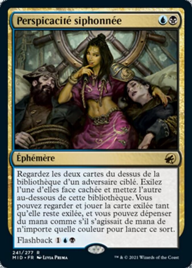 | Rules | Look at the top two cards of target opponent's library. Exile one of them face down and put the other on the bottom of that library. You may look at and play the exiled card for as long as it remains exiled, and you may spend mana as though it were mana of any color to cast that spell. Flashback |