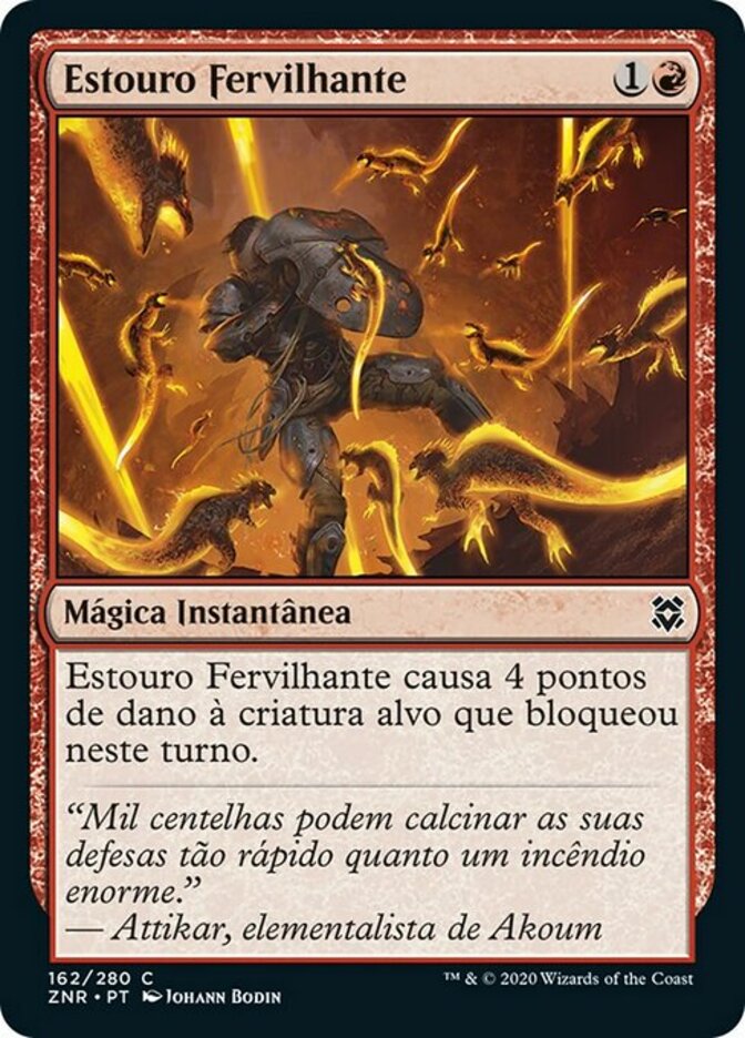 | Rules | Sizzling Barrage deals 4 damage to target creature that blocked this turn. |