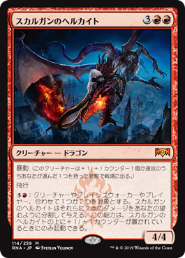 | Rules | Riot (This creature enters the battlefield with your choice of a +1/+1 counter or haste.) Flying : Skarrgan Hellkite deals 2 damage divided as you choose among one or two targets. Activate only if Skarrgan Hellkite has a +1/+1 counter on it. |