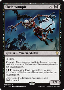 | Rules | Flying When Skeletal Vampire enters the battlefield, create two 1/1 black Bat creature tokens with flying. , Sacrifice a Bat: Create two 1/1 black Bat creature tokens with flying. Sacrifice a Bat: Regenerate Skeletal Vampire. |