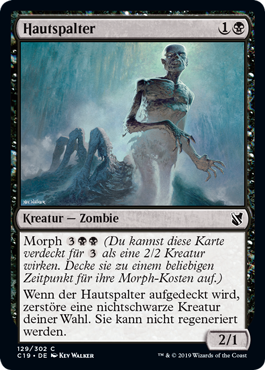 | Rules | Morph (You may cast this card face down as a 2/2 creature for . Turn it face up any time for its morph cost.) When Skinthinner is turned face up, destroy target nonblack creature. It can't be regenerated. |