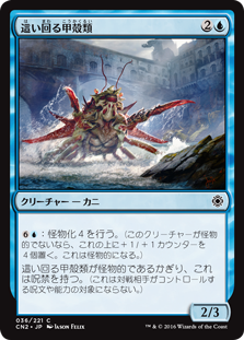 | Rules | : Monstrosity 4. (If this creature isn't monstrous, put four +1/+1 counters on it and it becomes monstrous.) As long as Skittering Crustacean is monstrous, it has hexproof. (It can't be the target of spells or abilities your opponents control.) |