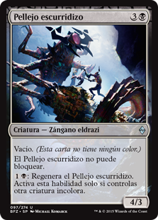 | Rules | Devoid (This card has no color.) Skitterskin can't block. : Regenerate Skitterskin. Activate only if you control another colorless creature. |