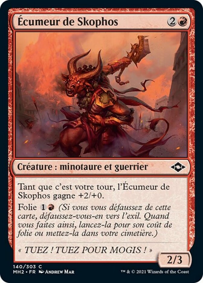 | Rules | As long as it's your turn, Skophos Reaver gets +2/+0. Madness (If you discard this card, discard it into exile. When you do, cast it for its madness cost or put it into your graveyard.) |