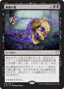 | Rules | When you cast this spell, copy it for each time you've cast your commander from the command zone this game. Each opponent sacrifices a creature. Each opponent who can't loses half their life, rounded up. |