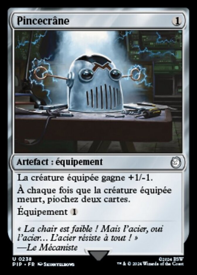 | Rules | Equipped creature gets +1/-1. Whenever equipped creature dies, draw two cards. Equip |