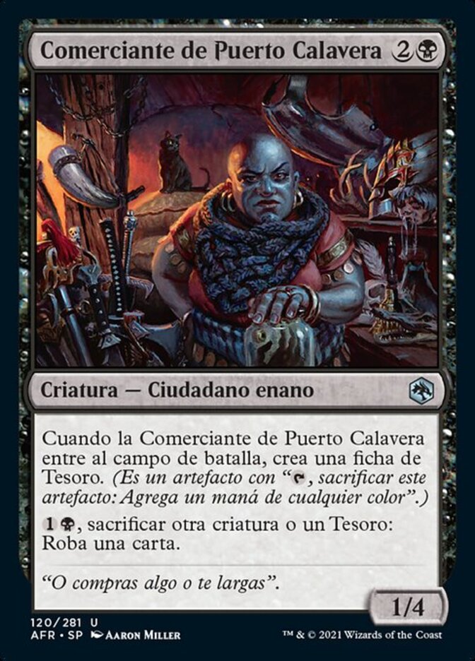 | Rules | When Skullport Merchant enters the battlefield, create a Treasure token. (It's an artifact with ", Sacrifice this artifact: Add one mana of any color.") , Sacrifice another creature or a Treasure: Draw a card. |
