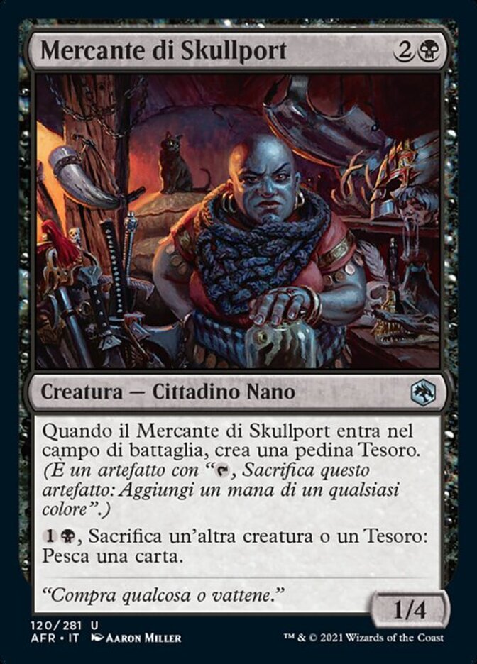 | Rules | When Skullport Merchant enters the battlefield, create a Treasure token. (It's an artifact with ", Sacrifice this artifact: Add one mana of any color.") , Sacrifice another creature or a Treasure: Draw a card. |
