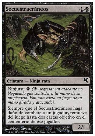 | Rules | Ninjutsu (, Return an unblocked attacker you control to hand: Put this card onto the battlefield from your hand tapped and attacking.) Whenever Skullsnatcher deals combat damage to a player, exile up to two target cards from that player's graveyard. |