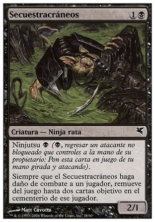 | Rules | Ninjutsu (, Return an unblocked attacker you control to hand: Put this card onto the battlefield from your hand tapped and attacking.) Whenever Skullsnatcher deals combat damage to a player, exile up to two target cards from that player's graveyard. |